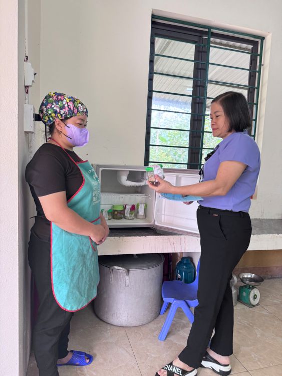 + Lưu mẫu: Việc lưu mẫu thức ăn hàng ngày được thực hiện đúng quy định về thời gian và nhiệt độ, phục vụ công tác truy xuất nguồn gốc khi cần thiết.