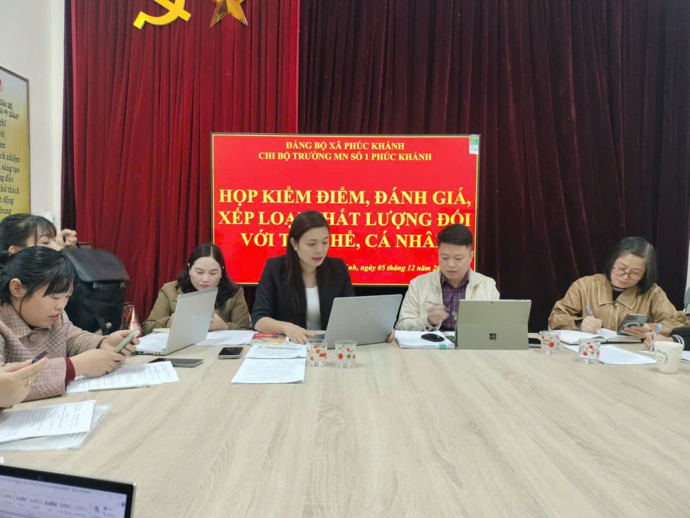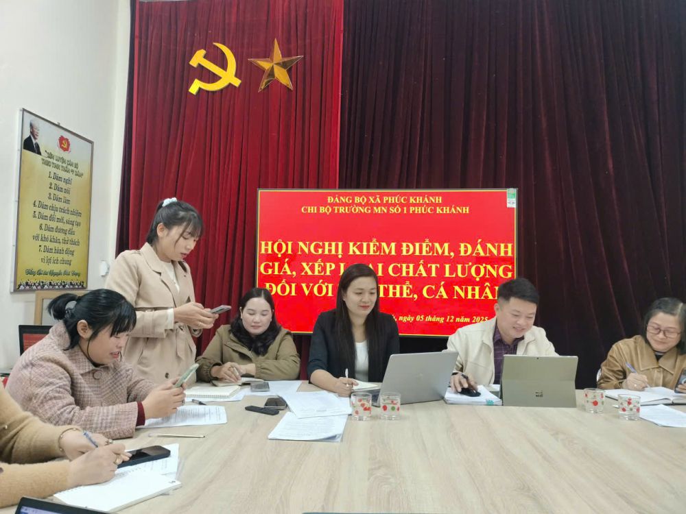 Chi bộ Trường MN số 1 Phúc Khánh tổ chức Hội nghị Kiểm điểm đánh giá, xếp loại tập thể, cá nhân năm 2025