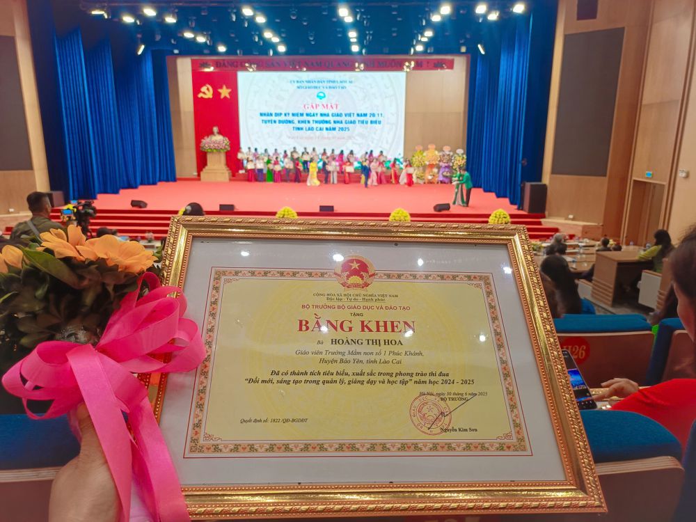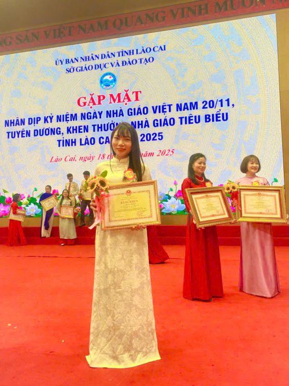 Ngày 18 tháng 11 năm 2025, UBND tỉnh Lào Cai tổ chức gặp mặt nhân dịp kỷ niệm 43 năm Ngày Nhà giáo Việt Nam (20/11/1982 - 20/11/2025) và tuyên dương, khen thưởng nhà giáo tiêu biểu tỉnh lào Cai.